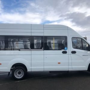 Пассажировместимость - 16+1 мест. Бензиновый двигатель Evotech 2,7, 106,8л.с.