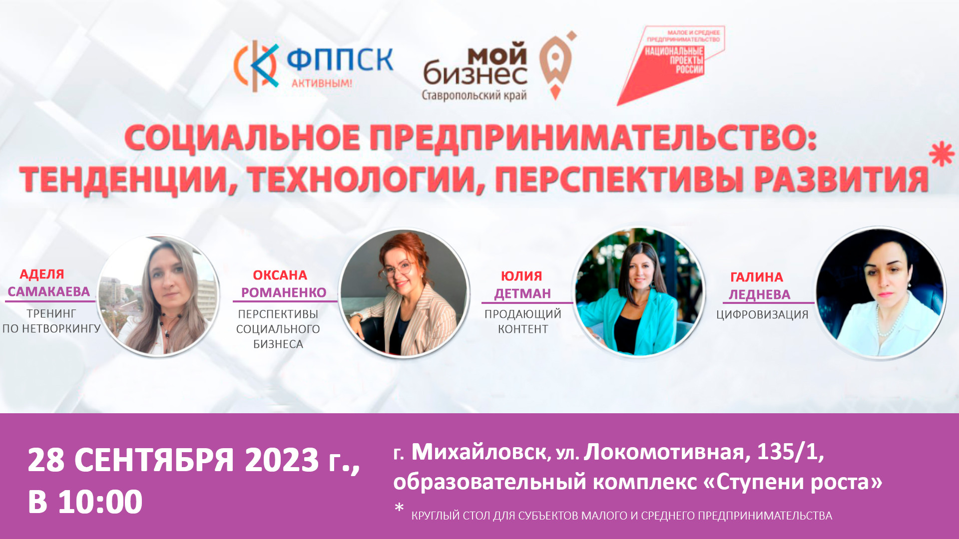 Круглый стол «Социальное предпринимательство: тенденции, технологии, перспективы развития» пройдет в Михайловске
