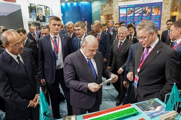 Во второй день Кавказского инвестиционного форума Председатель Правительства РФ Михаил Мишустин вместе с Премьер-министром Республики Узбекистан Абдуллой Ариповым осмотрели экспозицию регионов Северного Кавказа.