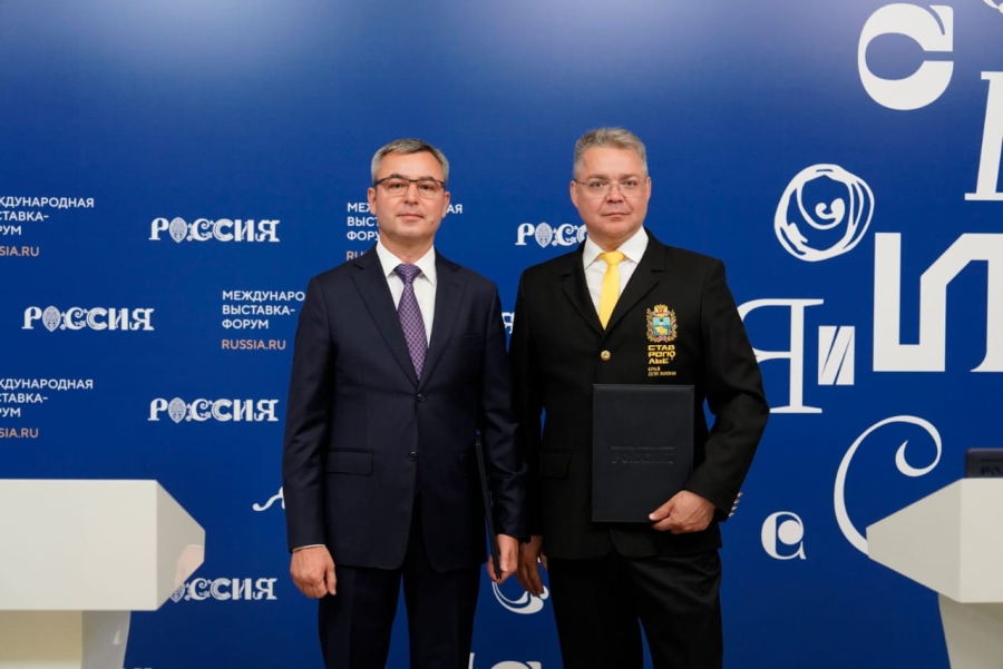На площадке Международной выставки-форума «Россия» в Москве Губернатор Ставрополья Владимир Владимиров и генеральный директор АО «Выставка достижений народного хозяйства» Сергей Шогуров подписали соглашение о сотрудничес