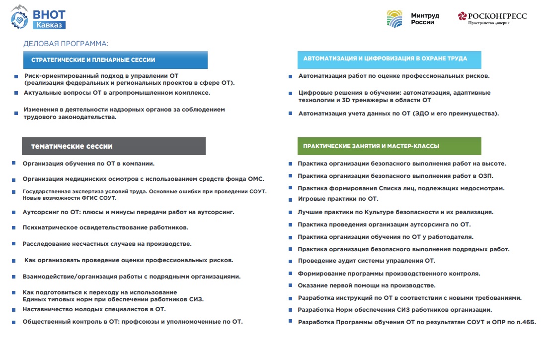 Оператором мероприятия является Фонд «Росконгресс» в лице лучших экспертов России, имеющих многолетний практический опыт в области охраны труда, разработке нормативно-правовых актов по охране труда,