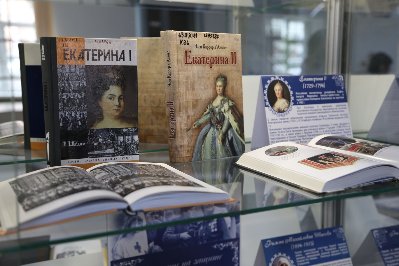 в разделе «Женщины в истории России» расположились книги о правлении Екатерины II; раздел «Женщины в науке» посвящен женщинам-ученым, которые изменили мир открытиями. Здесь гости выставки увидят книги о Марии Склодовской-Кюри, Софьи Ковалевской, Наталье Бехтеревой и других; в разделе «Женщины на защите Отечества» расположились книги о женщинах, которые отправлялись на войну наравне с мужчинами.Здесь для гостей экспозиции представлены автобиографическая книга Надежды Дуровой «Записки кавалерист-девицы», работа Н. Д. Судавцова «Римма Иванова – героиня Первой мировой войны», издание М. Расковой «Записки штурмана» и другие произведения.