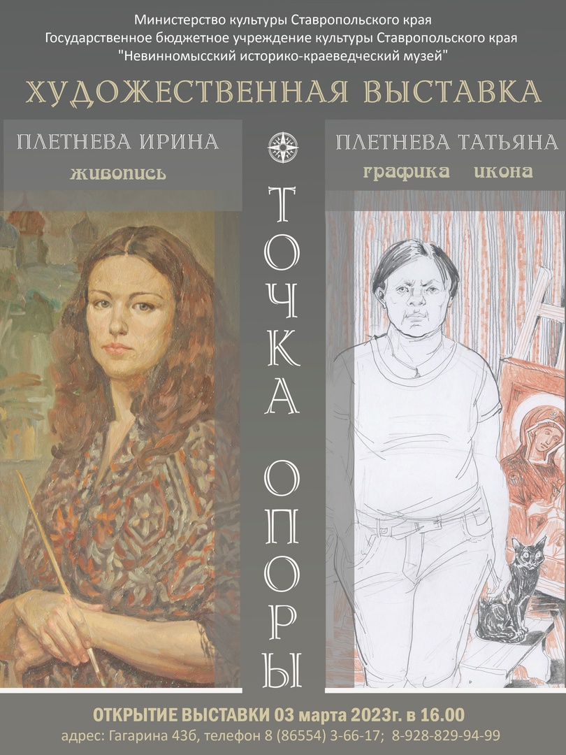 3 марта в 16-00ч. в выставочном зале Невинномысского историко-краеведческого музея пройдет открытие художественной выставки Ирины и Татьяны Плетневых «Точка опоры» .