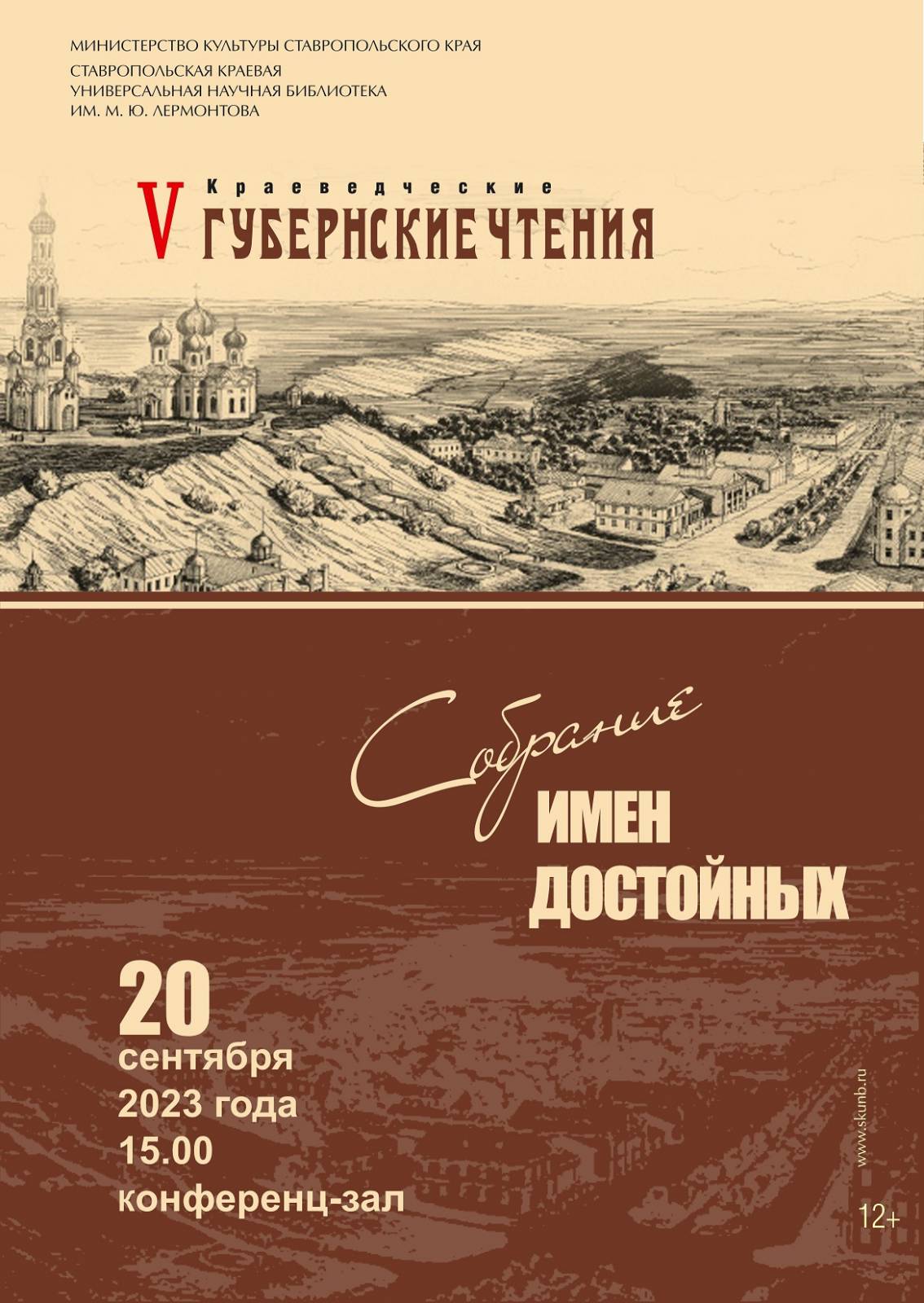 20 сентября 2023 года в 15 часов на краеведческих губернских чтениях в Ставропольской краевой научной библиотеке им. М.Ю. Лермонтова будут особо отмечены знаменательные даты известнейших личностей, внесших свой вклад в развитие Ставрополья.