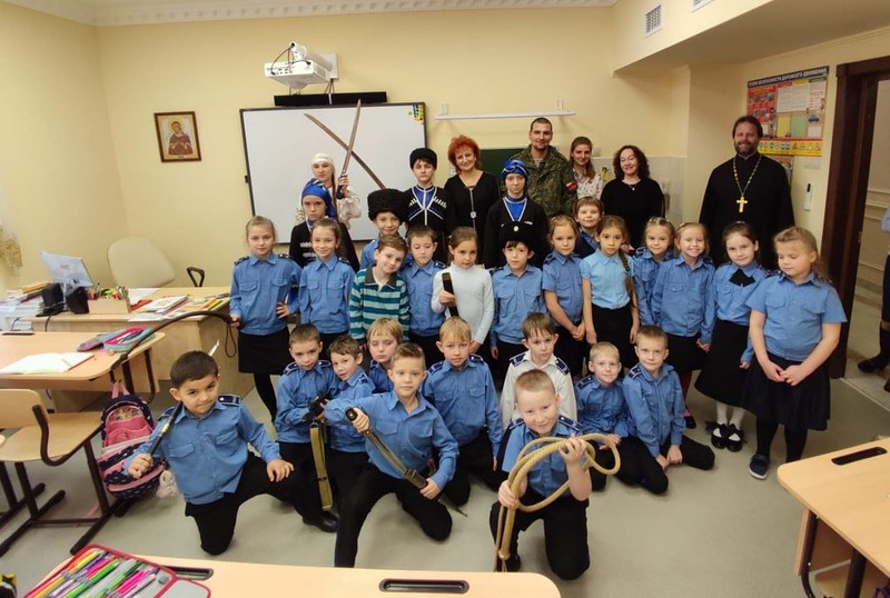 Казачата Архиерейского казачьего конвоя провели открытый урок в Православной Свято-Владимирской гимназии