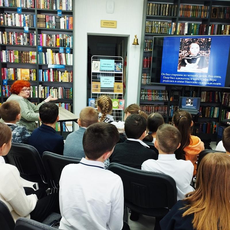 Восьмого февраля исполнилось 195 лет со дня рождения французского писателя, географа, классика приключенческой литературы и основоположника научной фантастики Жюля Верна. Ребят из Читательской Академии «Читаем! Думаем! Творим!» пригласили на литературную переменку, где они познакомились с интересными фактами из творческой биографии писателя и посмотрели бук трейлеры по самым выдающимся книгам автора. Вместе с библиотекарем ребята совершили виртуальное путешествие по городам и странам с главными героями произведений писателя, а также приняли участие в викторине «Что предсказал Жюль Верн в своих книгах?». Библиотекарь познакомила ребят с книгами знаменитого путешественника и замечательного писателя, имеющимися в фонде библиотеки, чтение которых у ребят впереди, а также восхищение, удивление и обожание.