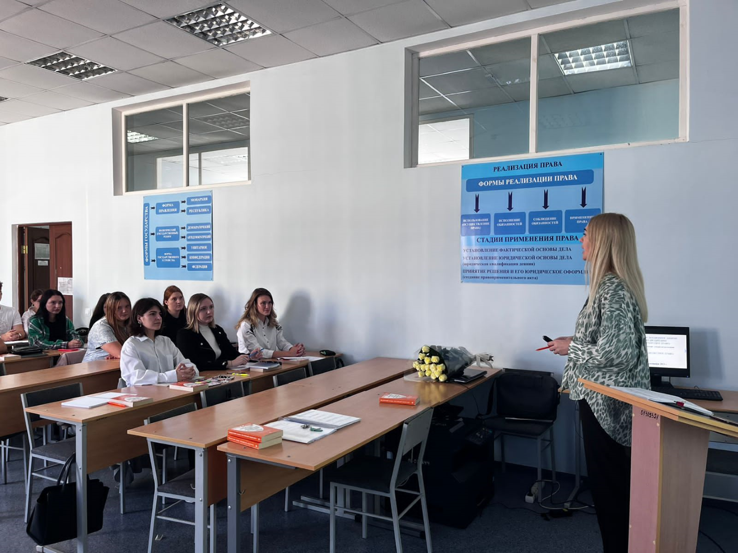 На занятии присутствовали: заведующий кафедрой правовых дисциплин Майшев С.Е., доценты кафедры правовых дисциплин Кузнецова О.В., Калиничева Е.П., Сотникова Ю.Н.. Преподаватели, присутствующие на занятии, отметили хороший уровень владения материалом, различными методами обучении, доброжелательный стиль общения педагога и студентов.