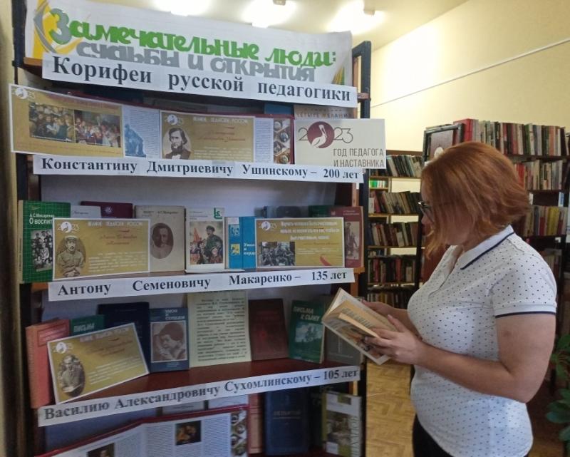 День информации для широкого круга читателей прошёл в библиотеке № 6 имени В.В. Ходарева. Мероприятие приурочено к 105 годовщине со дня рождения известного советского педагога-новатора, наставника, писателя Василия Александровича Сухомлинского, имя которого навсегда вошло в историю педагогической науки. Так как этот год объявлен Годом педагога и наставника, мы обратились к действующей в библиотеке выставке «Замечательные люди: судьбы и открытия», один из разделов которой как раз и посвящен В.А. Сухомлинскому. Библиотекарь познакомила читателей с биографией юбиляра, его произведениями, отметив их огромный вклад в развитие педагогики и новаторство его идей в процессе воспитания детей. Имея колоссальный педагогический опыт, он создал такую систему образования, в основе которой находится личность ребёнка. Он считал, что именно она обладает высшей ценностью и должна стать основой процесса образования и воспитания. Сухомлинский придавал огромное значение формированию мировоззрения ребёнка через труд, познание красоты окружающего мира, творческую деятельность, чтение книг и сочинение сказок вместе с детьми. Библиотекарь также подчеркнула, что педагог-новатор В.А. Сухомлинский посвятил всю свою жизнь детям, став для них не только учителем, но и добрым наставником, проницательным и чутким другом. Любовь и забота о детях, их будущем было смыслом его жизни. Его многочисленные труды по проблемам воспитания, основанные на многолетнем опыте работы в школе, изданы во всем мире. Они и сейчас продолжают привлекать внимание не только научной педагогической общественности, но и широкого круга простых читателей, озабоченных проблемами воспитания гармоничной личности с безграничной любовью к людям и родной земле. В своих известных произведениях «Письма к сыну», «Сердце отдаю детям», «Воспитание человека» он сформулировал базовые принципы воспитания ребёнка. Несмотря на то, что эти принципы обозначены им около полувека назад, они и сегодня не теряют своей актуальности, а скорее даже наоборот. И доказательство этого – живой интерес к заявленной теме у наших читателей.