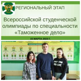15 марта 2023 года две команды ФГБОУ ВО «Пятигорский государственный университет», в состав которых вошли студенты Института иностранных языков и международного туризма (4 курс: Быкова Ангелина и Акентьева Валерия; 5 курс: Ревякин Владислав, Маргарян Анастасия и Саркисян Эрика), обучающиеся по специальности 38.05.02 «Таможенное дело», под руководством доцента кафедры креативно-инновационного управления и права А.Ю. Красильникова, руководителя ОПОП по специальности 38.05.02 «Таможенное дело» (специализация: «Регулирование таможенной деятельности»), доцента кафедры креативно-инновационного управления и права М.В. Чистовой и заведующего кафедрой экспериментальной лингвистики и межкультурной компетенции ИИЯМТ ПГУ, доцента В.В. Елькина на базе Лаборатории таможенной деятельности ИИЯМТ ПГУ с использованием электронных информационно-коммуникационных технологий приняли участие в организованном ФГАОУ ВО «Северо-Кавказский федеральный университет» региональном этапе Всероссийской олимпиады по таможенному делу, состязаясь с лучшими студентами вузов Северо-Кавказского федерального округа, реализующих образовательные программы по специальности 38.05.02 «Таможенное дело».