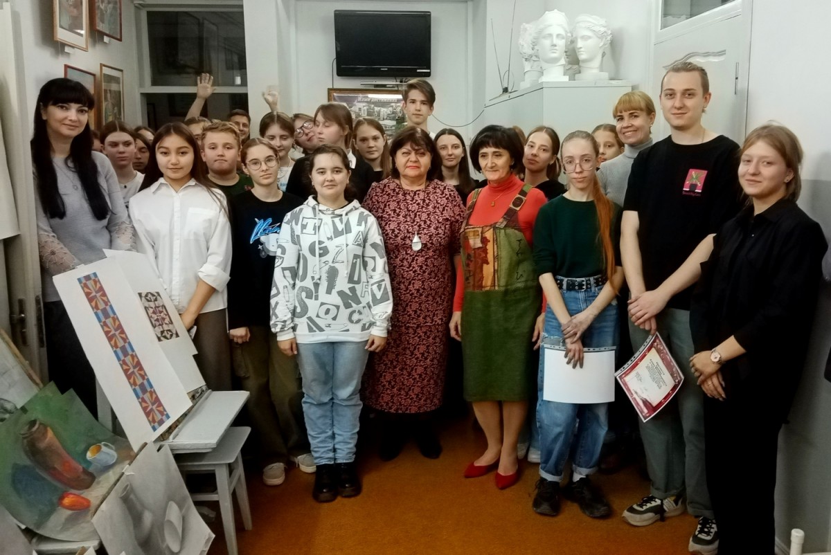 Минувшим днём нашу школу посетили педагоги краевого художественного училища: Светлана Сизоненко, Анна Денежко и Клим Сенев. Гости, для наглядности, привезли работы студентов, выполненные акварелью, гуашью, карандашом и керамику.