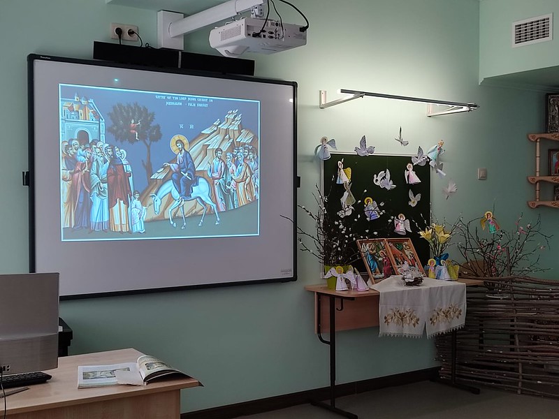По окончании Богослужения, после праздничной трапезы, для гимназистов был проведен открытый урок, посвященный праздникам Благовещения Пресвятой Богородицы и Входа Господня в Иерусалим.