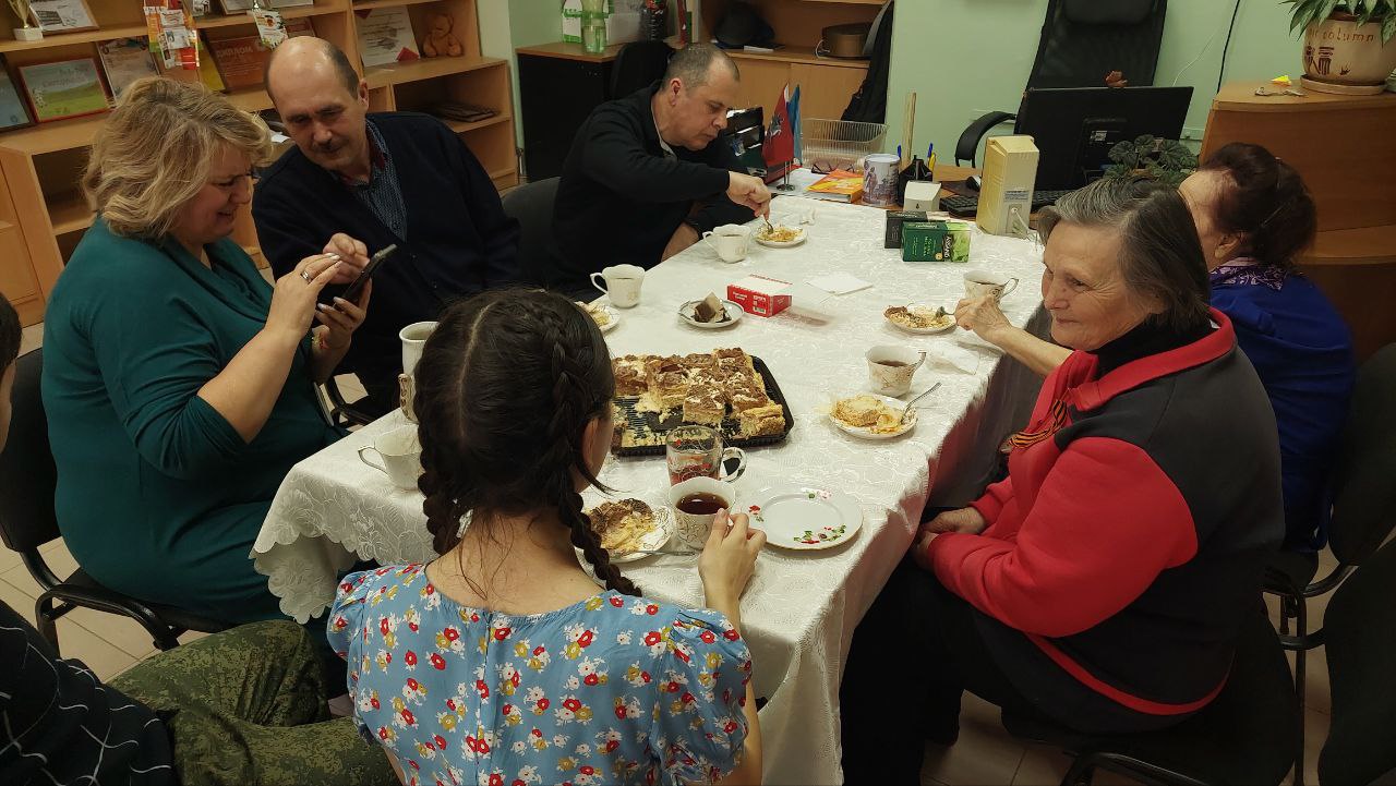 В канун Дня защитника Отечества в филиале РТУ МИРЭА в г. Ставрополе в теплой дружеской обстановке, прошла встреча-чаепитие с детьми войны, ветеранами труда: Дробот Надеждой Александровной и Коломийцевой Александрой Ивановной, а также с участниками Специальной Военной Операции по освобождению ЛНР и ДНР командиром стрелковой роты добровольческого отряда БАРС-19 – Игнатовым Сергеем Матвеевичем и заместителем командира батальона БАРС-19 – Курчевым Юрием Викторовичем. Надежда Александровна и Александра Ивановна поделились воспоминаниями о детстве под бомбежками с воем сирен, голоде и страданиях, которые пришлось пережить, а Сергей Матвеевич и Юрий Викторович рассказали о том, что участники СВО достойно исполняют свой долг защитников, с честью несут нелегкую службу по защите государственных интересов России обеспечению ее безопасности и самое главное по защите своих семей. Они с благодарностью вспомнили людей, которые сражались и сражаются сейчас за наше мирное небо над головой, почтили память погибших минутой молчания. Ребята, присутствующие на чаепитии передали от студентов и сотрудников филиала поздравление российским военнослужащим с наступающим мужским праздником и пожелали всем вернуться с Победой, живыми к своим семьям, родным и близким!