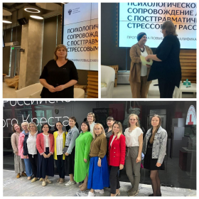 В период с 01.06.2023 по 30.06.2023 заведующая кафедрой общей и педагогической психологии, доцент Шаповалова Маргарита Львовна прошла обучение по программе повышения квалификации «Психологическое сопровождение лиц с посттравматическим стрессовым расстройством», организованной Федеральным государственным бюджетным учреждением «Российская академия образования», Федеральным ресурсным центром психологической службы в системе высшего образования. Программа дополнительного профессионального образования предполагает модульный формат обучения, который включает 4 тематических модуля (3 дистанционных и 1 очный):
