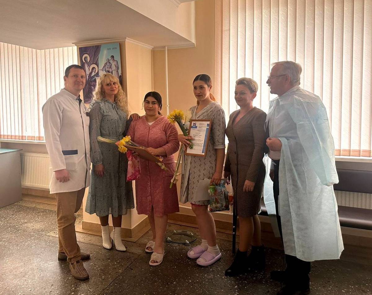 В рамках него заведующая Отдела ЗАГС Лилия Духненко, директор Межрайонного филиала в городе Георгиевске территориального фонда обязательного медицинского страхования Ставропольского края Олег Чаплыгин и депутат Думы Кировского городского округа, исполнительный секретарь местного отделения партии Наталья Терехова приехали на выписку в роддом Кировской районной больницы.