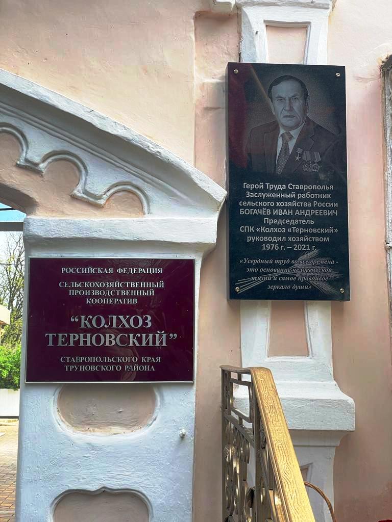 На Ставрополье в селе Труновском Труновского района 1 мая мемориальную доску в память о депутате Думы края, 45 лет руководившем СПК «Колхоз «Терновский», Герое труда Ставрополья, заслуженном работнике агропромышленного комплекса Российской Федерации, ветеране КПРФ Иване Богачёве открыли на здании Правления его родного хозяйства.