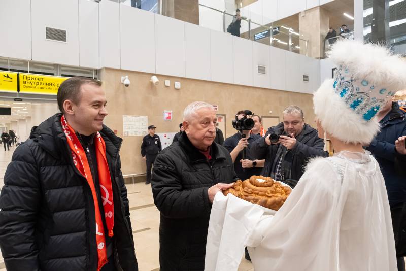 В Красноярском аэропорту прошла торжественная встреча кандидата в Президенты России от КПРФ Николая Харитонова и первого заместителя Председателя ЦК КПРФ Юрия Афонина.