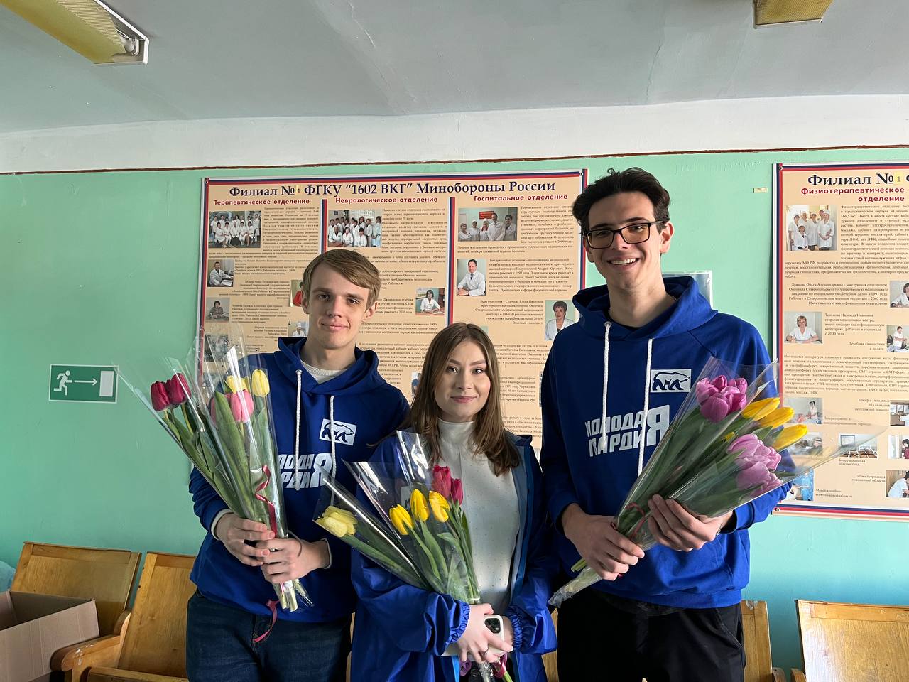 Сегодня, 7 марта, активисты «Молодой Гвардии», в преддверии Международного женского дня, посетили филиал №1 Федерального казенного государственного учреждения «1602 военный клинический госпиталь» Министерства обороны Российской Федерации.