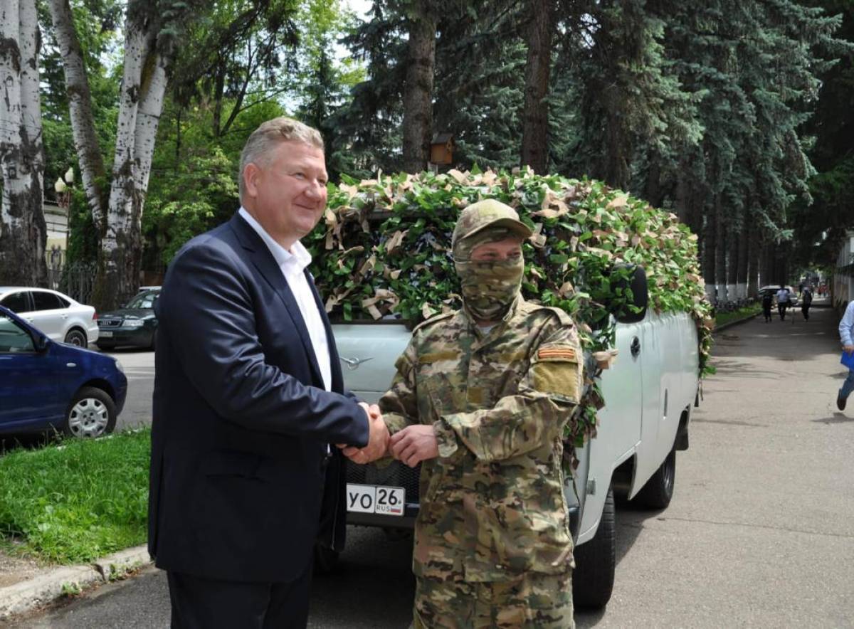 Депутат Думы Ставропольского края, член фракции «Единая Россия» Николай Мурашко передал ключи от автомобиля УАЗ представителю мобилизованных.