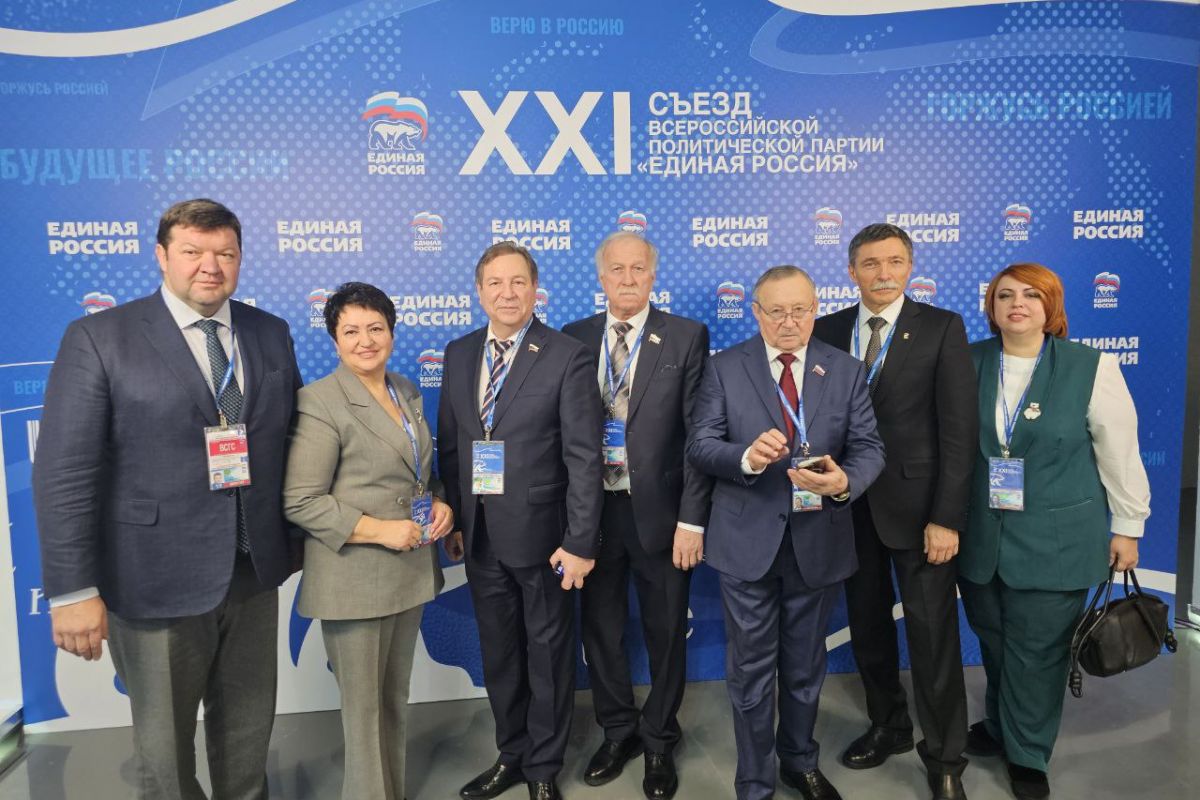 Ставропольский край на XXI Съезде Партии представляли: первый заместитель секретаря регионального отделения партии, председатель Думы Ставропольского края седьмого созыва Николай Великдань , руководитель региональной общественной приёмной Председателя партии «Единая Россия» Д.А. Медведева, заместитель секретаря регионального отделения партии Дмитрий Судавцов, руководитель фракции партии «Единая Россия» в Думе Ставропольского края 6-го созыва Юрий Гонтарь , исполняющая обязанности заместителя Председателя Правительства Ставропольского края, руководитель Аппарата Правительства Ставропольского края заместитель руководителя аппарата Правительства Ставропольского края Любовь Маковская, первый заместитель руководителя РИК Ставропольского регионального отделения партии Наталья Гутовская.