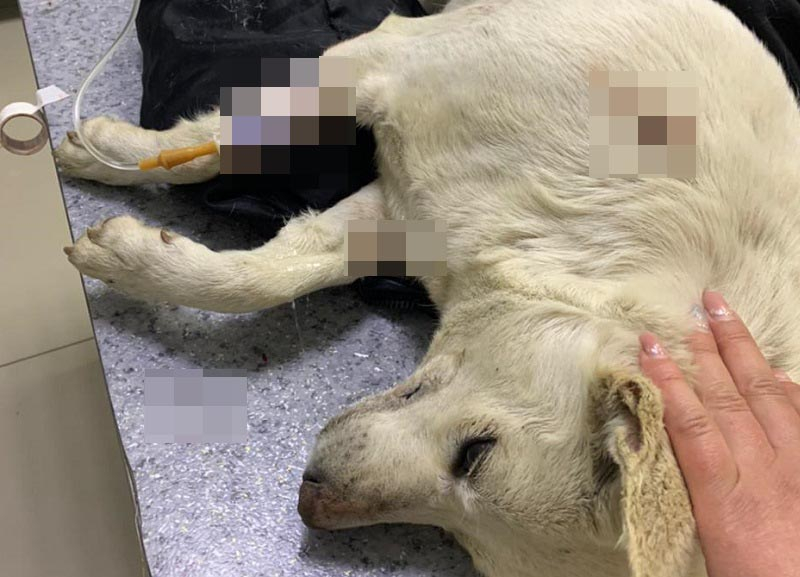 Пса доставили в ветклинику. Судя по ране, неизвестные подстрелили собаку дротиком. В полиции ситуацию не комментировали.