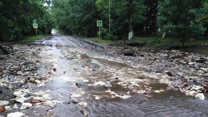 Ночью подтопило несколько населённых пунктов в Предгорном округе. По улицам текут потоки воды с камнями и грязью — такая ситуация, например, сложилась в посёлке Ясная Поляна.
