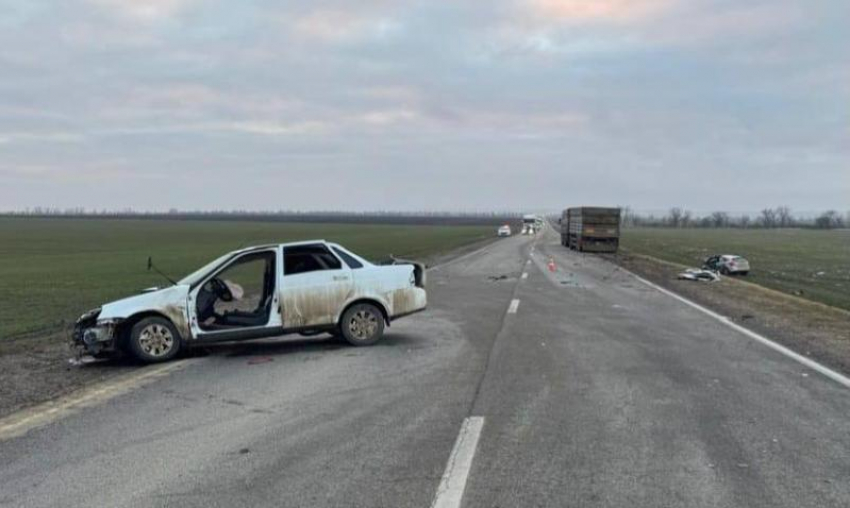 Фото: Госавтоинспекция по СК Неосмотрительный обгон на трассе в Петровском округе Ставропольского края 15 января привел к столкновению двух легковушек и грузовика, в итоге погиб один из водителей и пять человек пострадали.