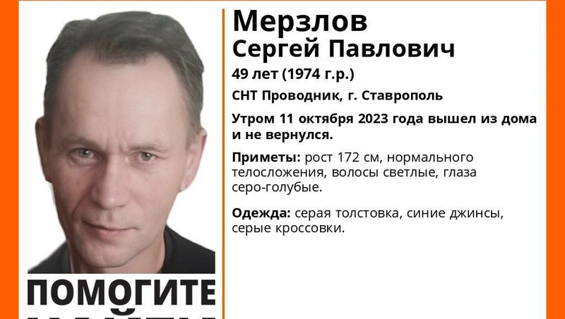 Происшествия 18 октября , 07:54 Худого подростка в чёрных брюках ищут в Ессентуках Общество 21 октября , 12:44 Пропавшего худощавого пожилого мужчину уже 10 дней ищут на Ставрополье Происшествия 13 октября , 15:20 Мужчину в синих джинсах ищут на Ставрополье Все новостиПоследние новости