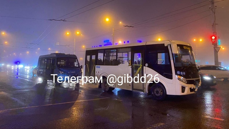 Машины столкнулись на пересечении улиц Шпаковская и Доваторцев. По предварительным данным, водитель микроавтобуса Iveco не выдержал безопасную дистанцию и врезался в автобус «ПАЗ», ехавший впереди.