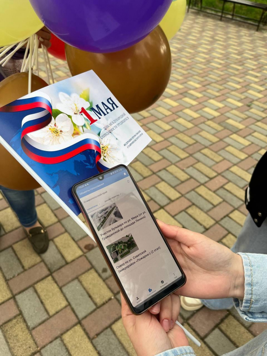 1 мая волонтерский отряд «МЫ» МОУ «СОШ №2 г. Зеленокумска» совместно с Молодежным центром СГО поздравили жителей города с праздником яркими шарами, а также помогли сделать свой выбор за один из объектов для голосования,