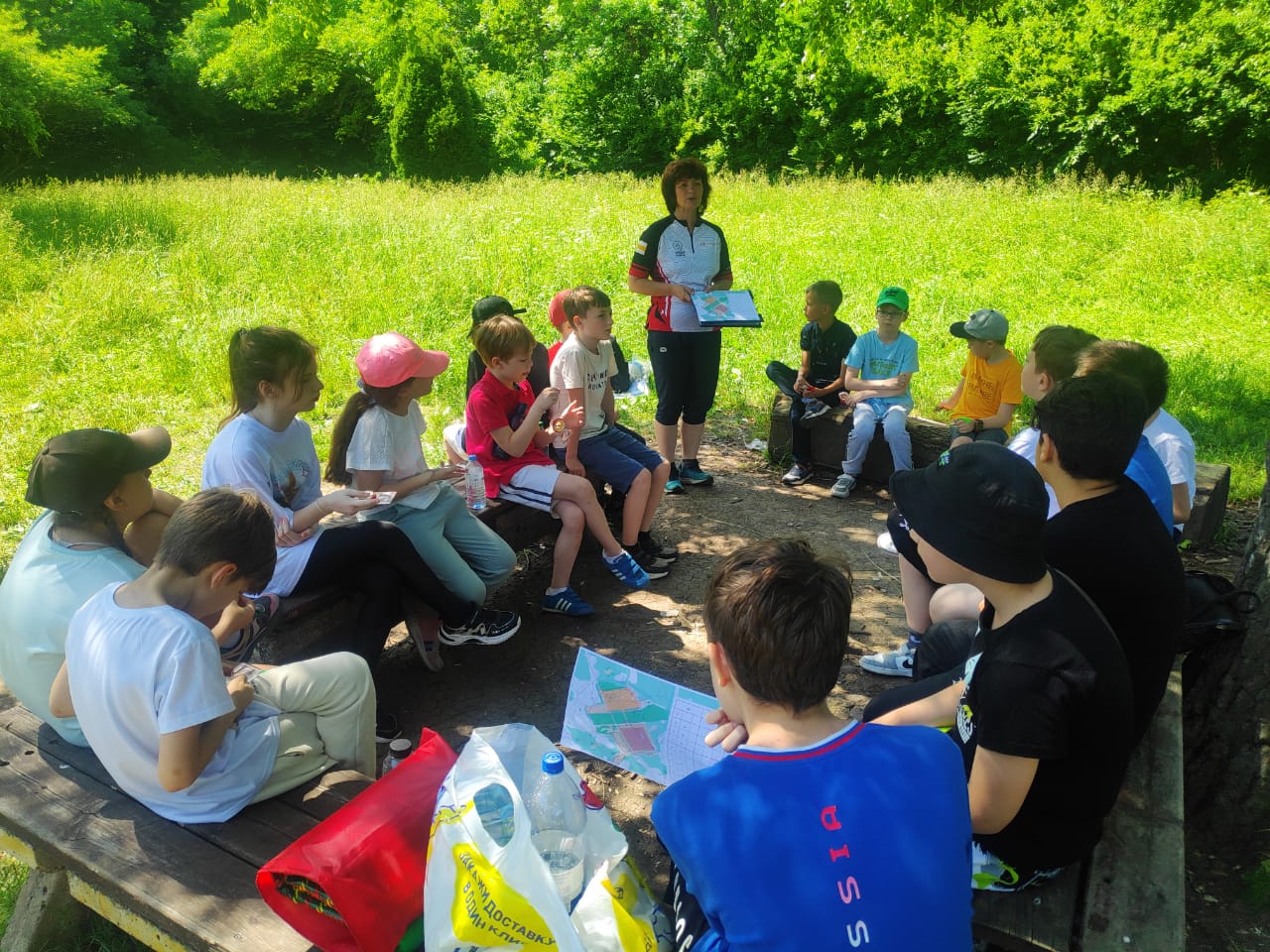 Тренеры занимаются с ребятами в первой половине дня. Проводят разминку, открытые тренировки по разным видам спорта, соревнования и «веселые старты». А также беседуют с детьми о здоровом образе жизни, физической нагрузке и рассказывают ребятам о городских спортшколах.