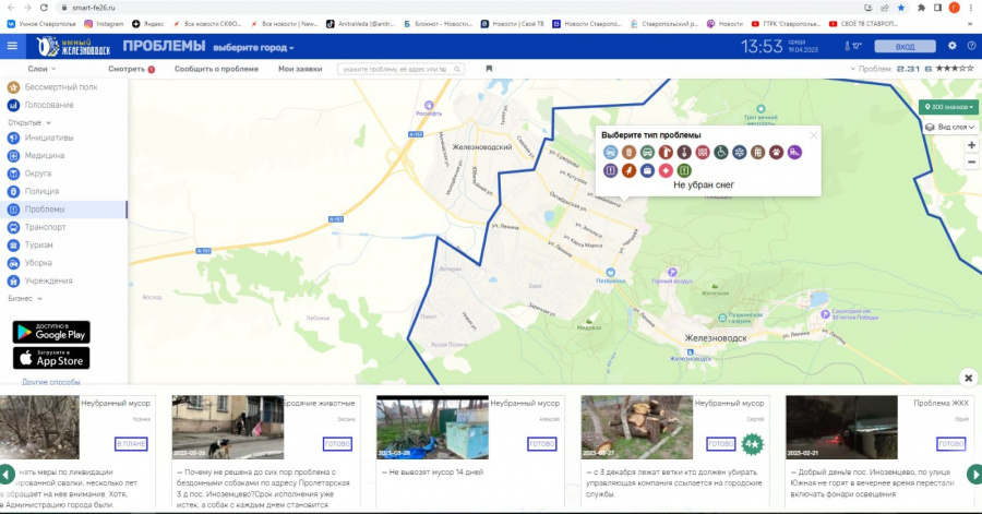 Самые активные пользователи, по-прежнему, из числа жителей, а также гостей краевого центра и городов-курортов Железноводска и Кисловодска. В первом квартале 2023 года по вопросам благоустройства, проблем ЖКХ, земляных работ, ям, дорог, мусора, освещения и другого в администрацию Кисловодска поступило 19 обращений, Железноводска – 97, в мэрию Ставрополя – 126.
