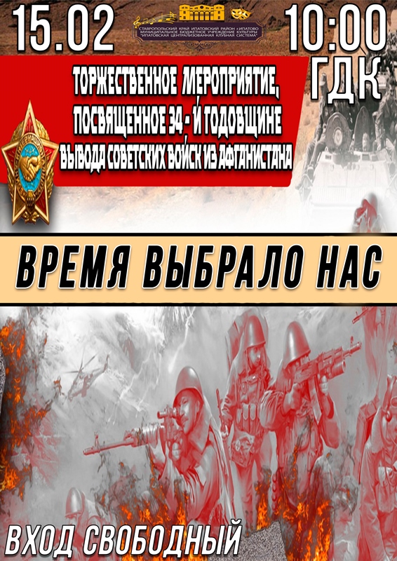 Приглашаются воины – интернационалисты, исполнявшие воинский долг в республике Афганистан, жители и гости Ипатовского округа.