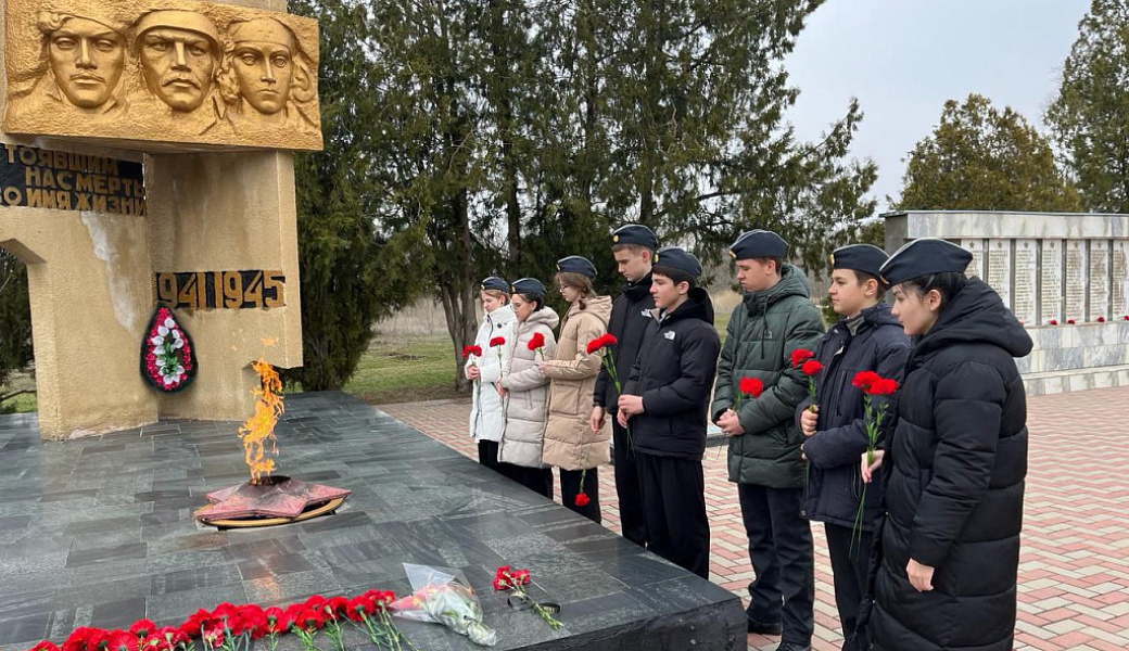 Учащиеся и педагоги возложили цветы к мемориалам погибших воинов и героев, оставившим свои жизни во имя защиты Отечества.