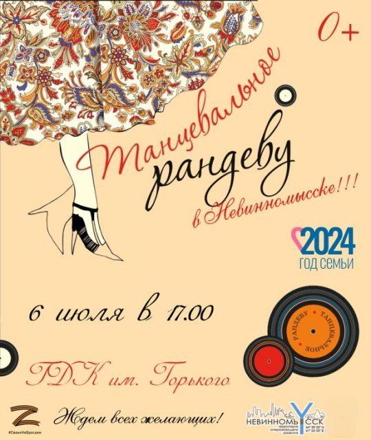 Мероприятие пройдет 6 июля на площади перед ДК им.Горького. «Приглашаю жителей и гостей Невинномысска на вечер отдыха «Танцевальное рандеву»!