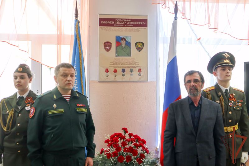 Право открыть памятный стенд было предоставлено отцу погибшего росгвардейца Захару Бабаёву и генерал-майору Эдуарду Рожкову . Собравшиеся возложили к стенду цветы и почтили память героя минутой молчания.