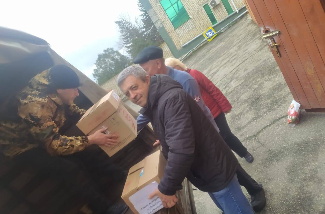 Жители округа продолжают оказывать помощь воинам. Приносят консервы, крупы, сахар, воду, туалетные принадлежности и т.д.