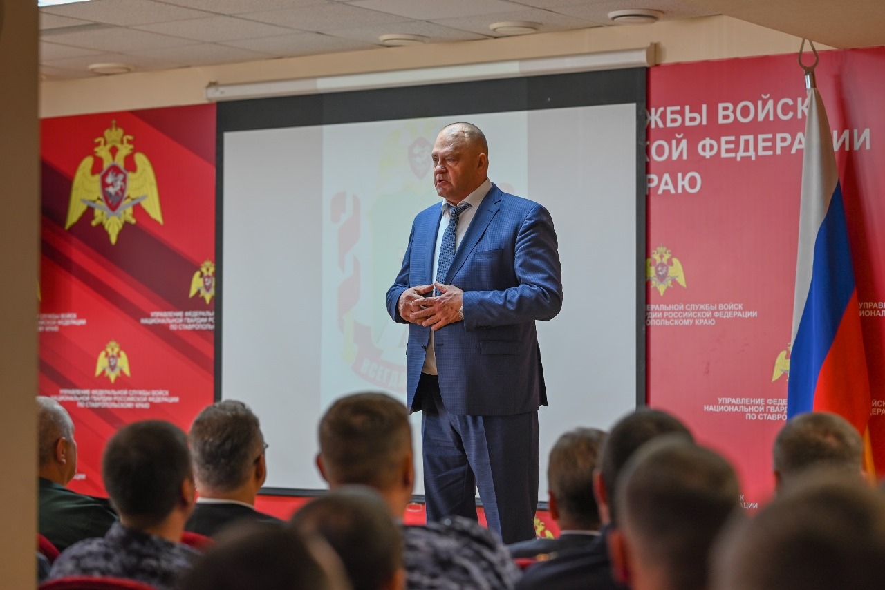 В Управлении Росгвардии по Ставропольскому краю состоялось торжественное мероприятие, посвященное 7-летию со Дня его образования. Со значимой датой сотрудников поздравили Губернатор Ставрополья Владимир Владимиров и депутат краевой Думы Ставропольского края, кавалер трех орденов Мужества Сергей Шевелев.