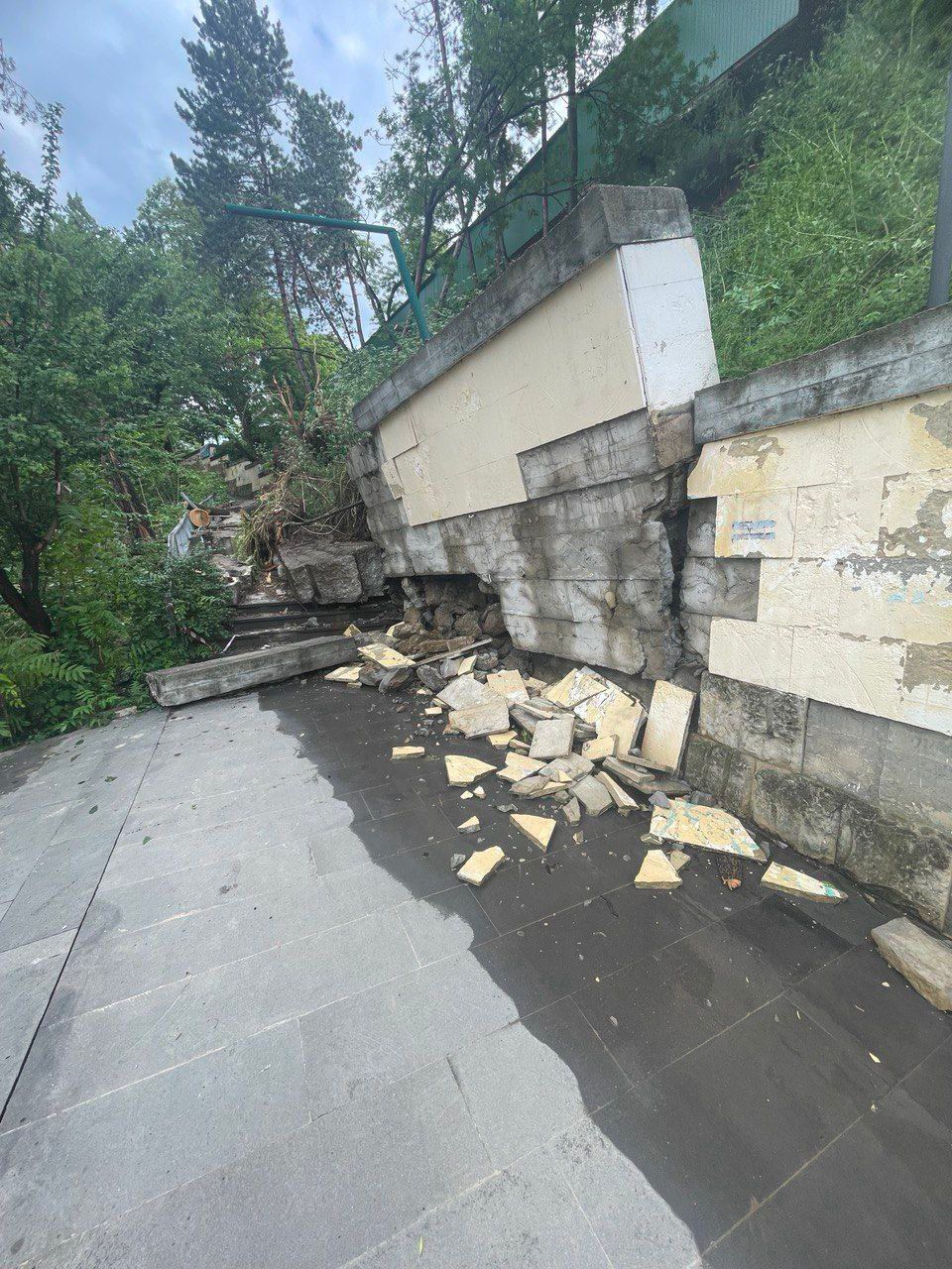 В центральной и жилой части Кисловодска обвалились две подпорные стены.