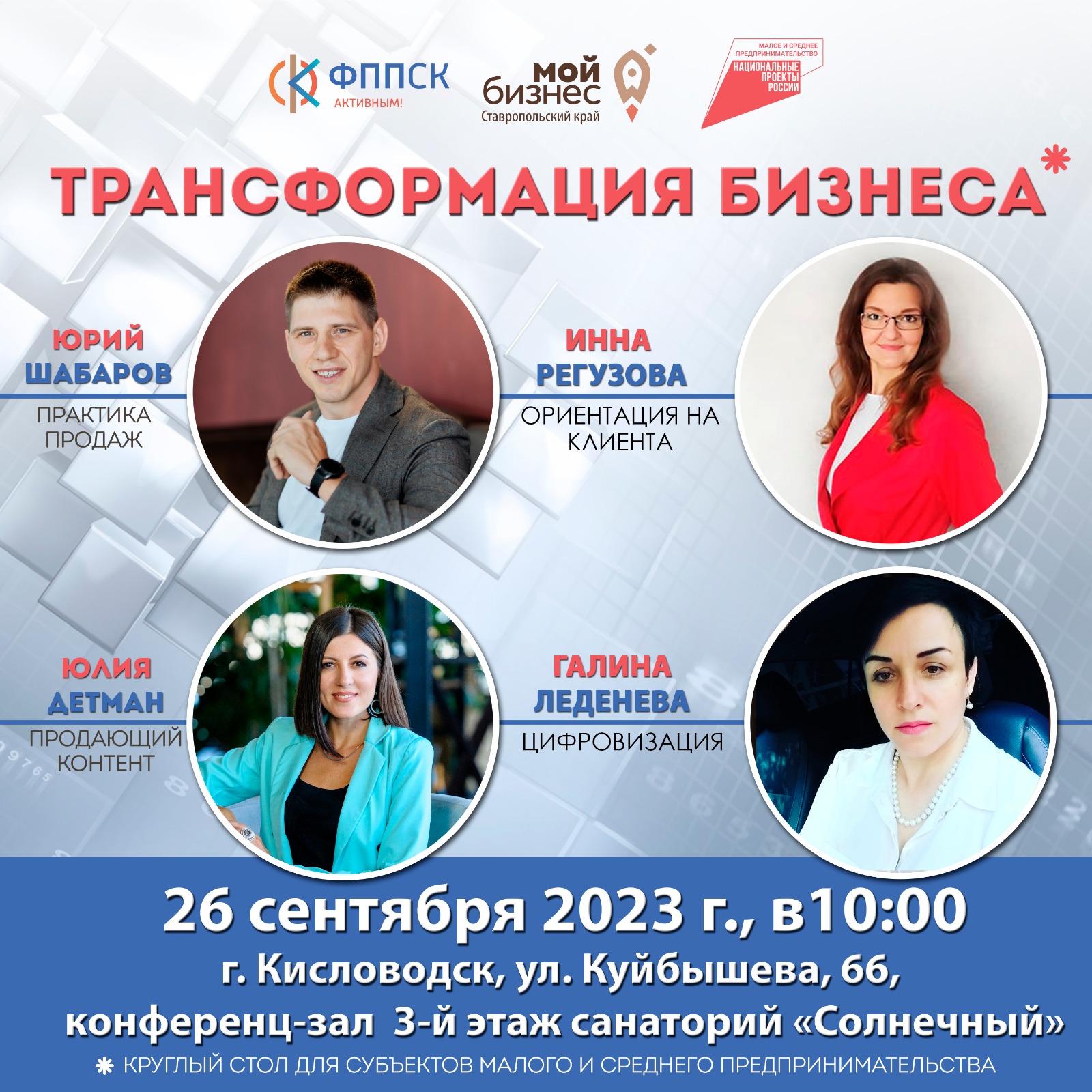 Круглый стол: «Трансформация бизнеса» 26 сентября 2023 года в 10-00 г. Кисловодск, ул.