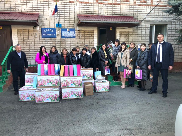 7 марта, в преддверии Международного женского дня Глава Благодарненского муниципального округа Александр Иванович Теньков вместе с заместителем главы администрации – начальником управления по обеспечению общественной безопасности, гражданской обороне и чрезвычайным ситуациям администрации округа А.М. Донцовым посетили подшефные дошкольные образовательные учреждения Антрацитовского района Луганской Народной Республики Российской Федерации.