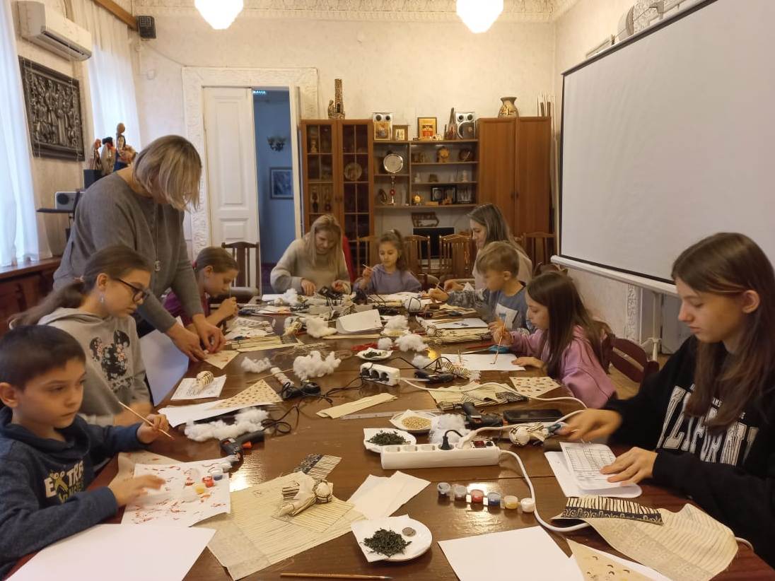 Перед началом работы об истории возникновения Масленицы, традициях и обрядах древнейшего славянского праздника, ребятам рассказала сотрудник Пятигорского краеведческого музея Олеся Чумак. Обратившись к истории праздника, ребята узнали, что на Масленицу в каждой семье мастерили куклу, которая была обязательным атрибутом веселого народного гулянья – проводов зимы. Далее юным участникам встречи было предложено самостоятельно изготовить поделку в виде куколки из текстиля и ниток. Платок куколки ребята расписали вручную акриловыми красками. Для сохранения мира и добра в доме, в заготовку куколки ребята поместили зерна и ароматную траву чабрец, а также монетку, чтобы в доме всегда царил достаток.