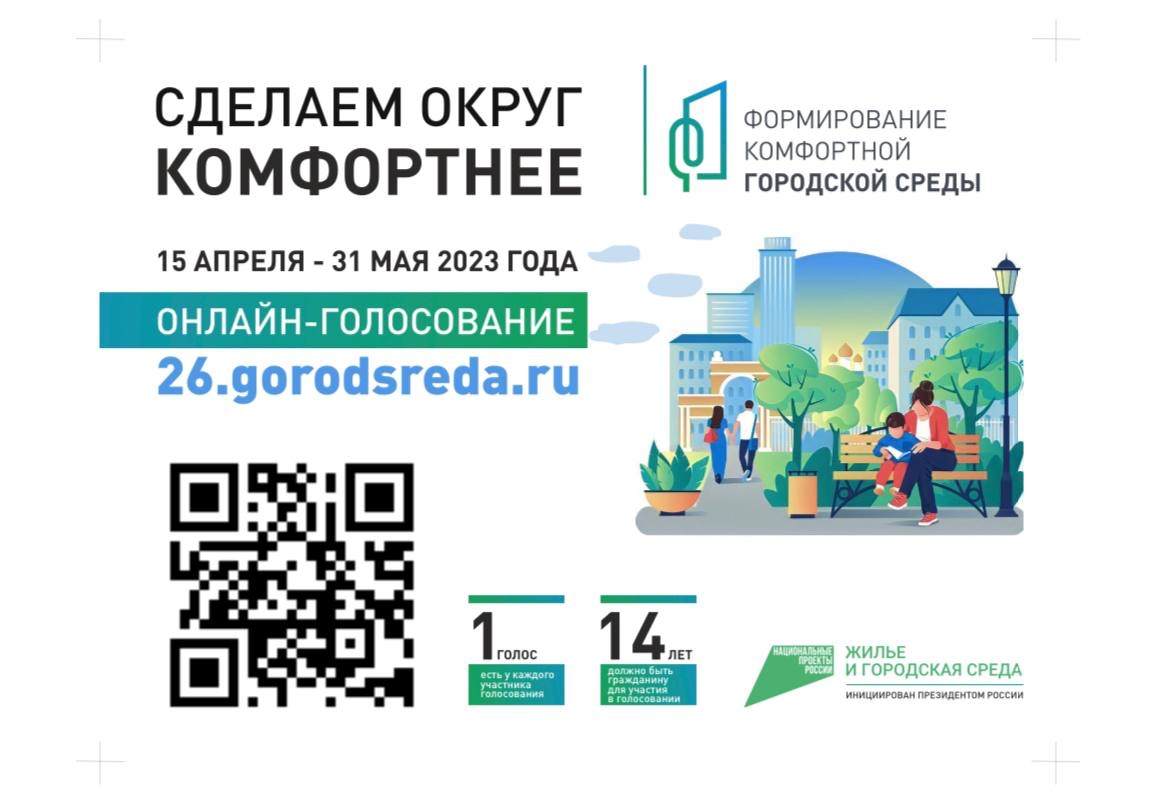 Голосование будет проводиться в электронной форме на онлайн-платформе https://26.gorodsreda.ru/ и пройдет с 15 апреля по 31 мая 2023 года