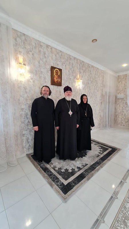 На территории обители правящего архиерея встречали настоятельница монастыря игумения Иоанна (Лихоманова), руководитель строительного отдела епархии протоиерей Александр Гомзяк, духовенство и сестры обители.