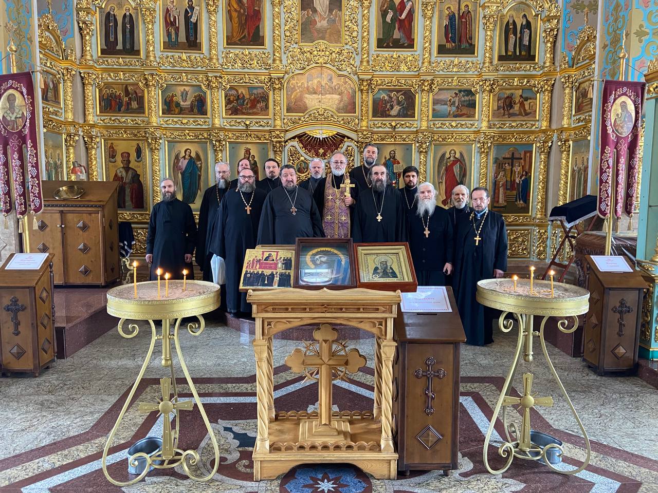 Перед исповедью священнослужители совершили благодарственный молебен, по окончании которого собратья поздравили отца духовника с прошедшими именинами и Днем рождения, выпавшими в этом году на первую седмицу Великого Поста. Благочинный протоиерей Иоанн Знаменский огласил поздравление Владыки Феофилакта, отметил подвижнические труды протоиерея Гермогена, являющиеся примером самоотверженного служения Церкви Христовой и от имени всего духовенства округа пожелал Имениннику крепости сил для дальнейшего пастырского служения на благо Матери Церкви и Отечества.