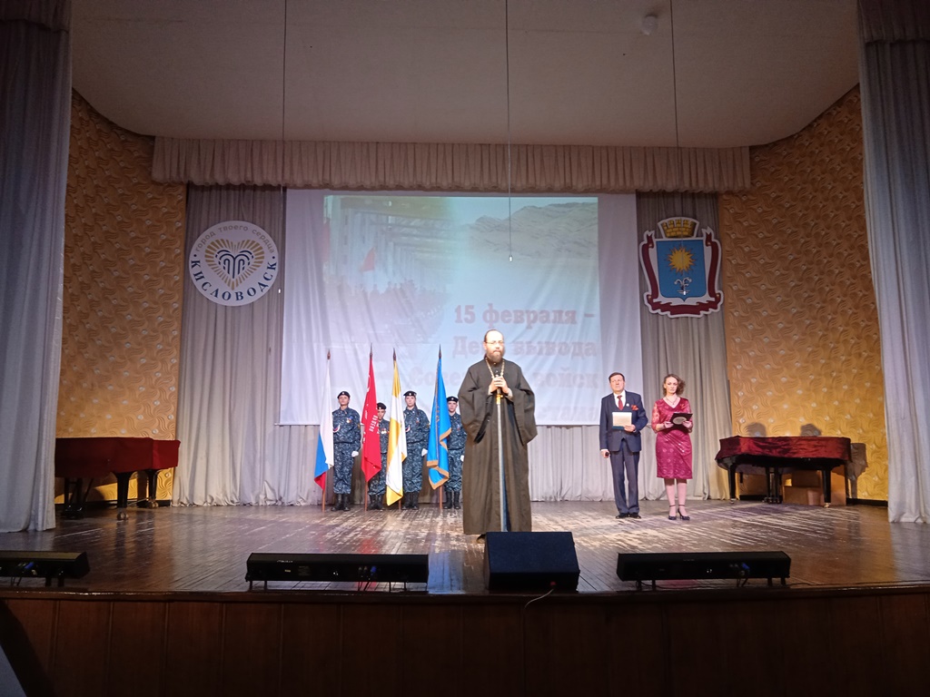 Протоиерей Димитрий обращаясь к собравшимся отметил, что «столь важное событие – вывод войск из Афганистана, произошло именно 15 февраля, когда Православная Церковь отмечает один из главных праздников года – Сретение Господне. Слово «Сретение» буквально означает – «встреча», встреча со Христом-Спасителем. И в жизни многих к этой встрече ведет дорога испытаний, сомнений, болезней или ран – душевных или телесных. В нашем народе всегда с особым благоговением относились к воинам и тщательно оберегали память павших, а также тех, кто умер от ран, выполняя свой священный долг. Воинское служение никогда не осуждалось Спасителем. Церковь и армия всегда были с народом. Они отстаивали жизнь и достоинство Отчизны, хранили ее достояние, ее культуру, ее духовное наследие».