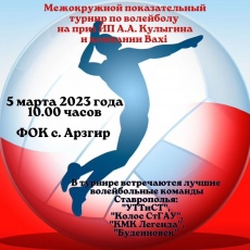 Напоминаем, что 05 марта 2023 года в 10 часов состоится показательный турнир по волейболу на приз ИП А.А.Кулыгина и компании Baxi. В турнире примут участие команды: "УТТиСТ", "Колос СтГАУ", "КМК Легенда" города Ставрополя и команда "Буденновск" города Буденновска!