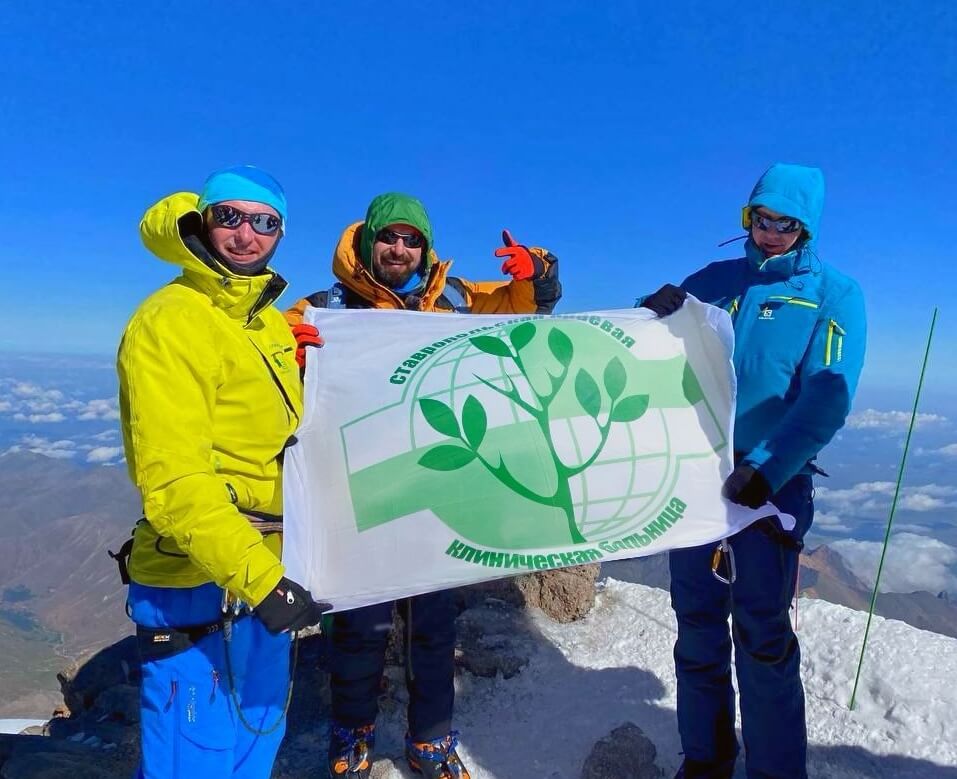 Флаг Ставропольской краевой клинической больницы в очередной раз побывал на вершине Эльбруса