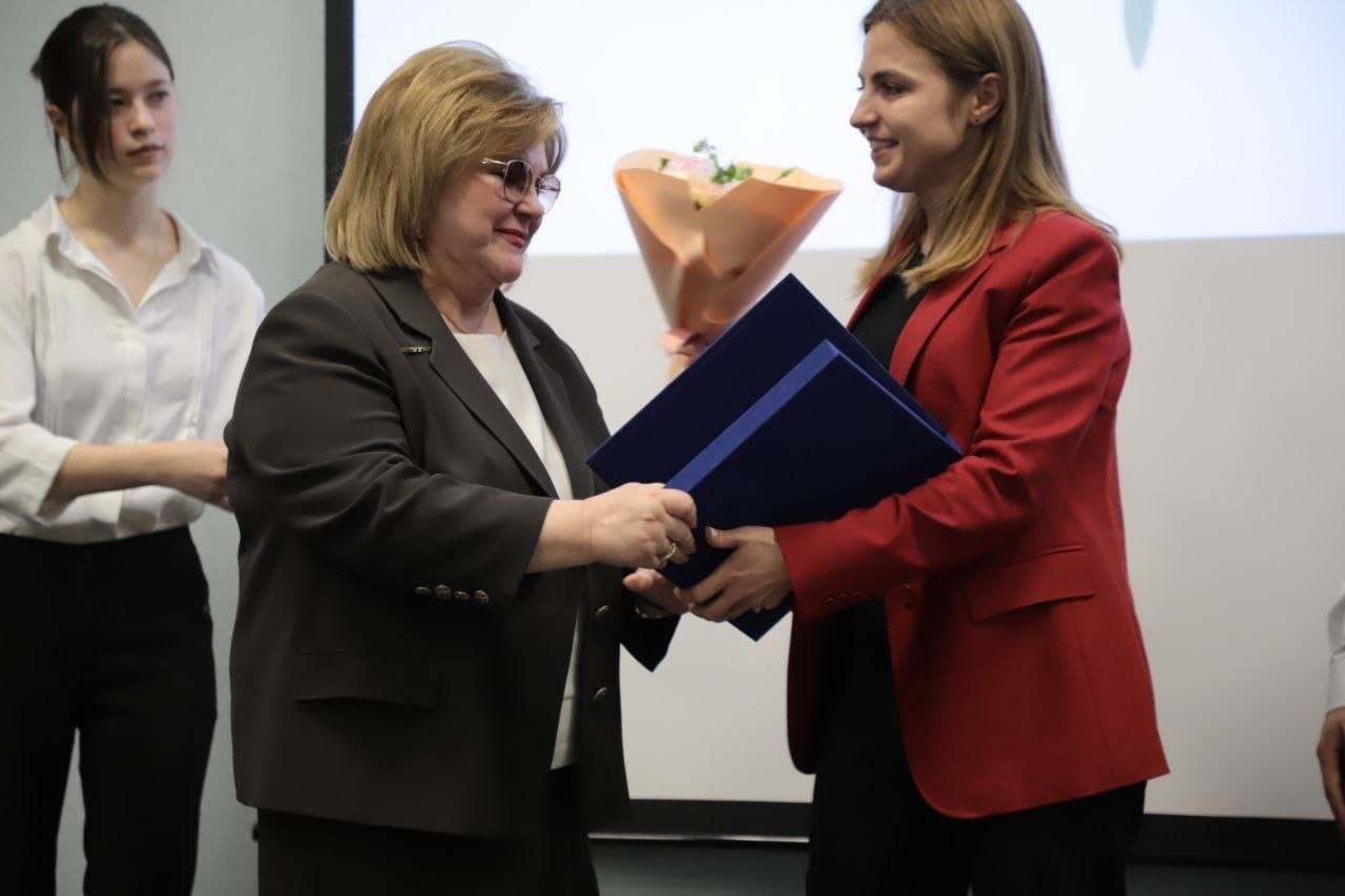 Директор ПМФИ ВолгГМУ Минздрава России Ольга Ахвердова в своей речи поделилась важными и вдохновляющими идеями, выразила благодарность всем, кто работает на благо нашего института, а также акцентировала важность научных исследований и высокого качества образования.