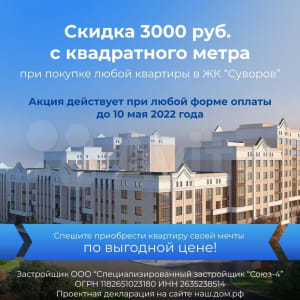 При покупке квартиры в ЖК "Суворов" получите скидку до 3000 рублей с квадратного метра!