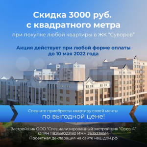 При покупке квартиры в ЖК "Суворов" получите скидку до 3000 рублей с квадратного метра!